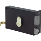 En acier cambré. Pêne ½ tour, et pêne dormant en acier. Mécanisme 6 gorges, 2 tours. Rappel à l'équerre. Livré avec gâche et 2 clés. Fo...
