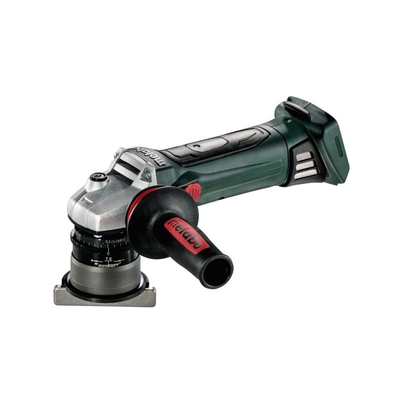 Fonctionne sur batterie 18 V. Points de verrouillage pour empêcher une modification involontaire de la profondeur de fraisage. Permet d'ajuster la profondeur de fraisage à une main. Butée de guidage et bague de guidage à roulements à billes. Hauteur de chanfrein max. 45° : 3 mm Poids : 3,100 kg Livrée avec 2 plaques réversibles HM, 2 vis de fixation pour plaques réversibles, butée de guidage, tournevis TX 15, poignée supplémentaire Metabo VibraTech, filtre à poussières, Metaloc. Version Pick+Mix, livrée sans batterie ni chargeur.