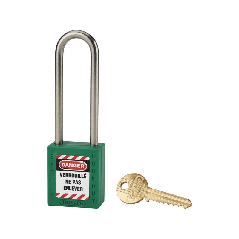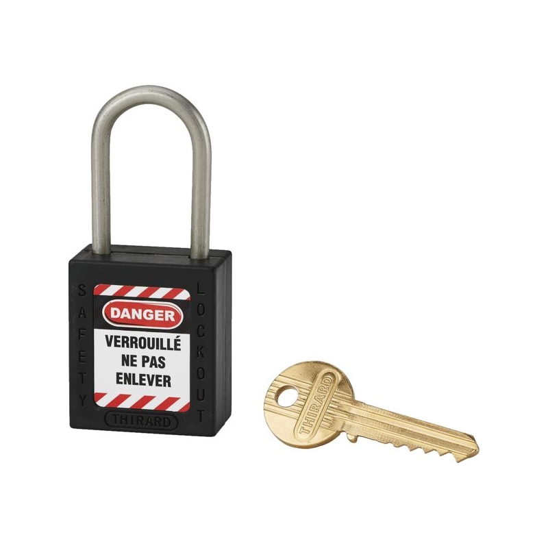 Corps ABS non conducteur avec anse en acier inoxydable. Double ancrage. Livré avec 1 clé. Fonction clé prisonnière. Corps (L x H) : 38 x 44 mm Conditionnement : boite