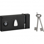 À pêne dormant ½ tour. Mécanisme 2 tours. Livré avec gâche et 2 clés. Coffre : 140 x 82 mm Axe à la clé : 58 mm Entraxe : 58 mm Canon : 40 mm Fouillot carré : 6 mm Finition : époxy noir Conditionnement : sachet