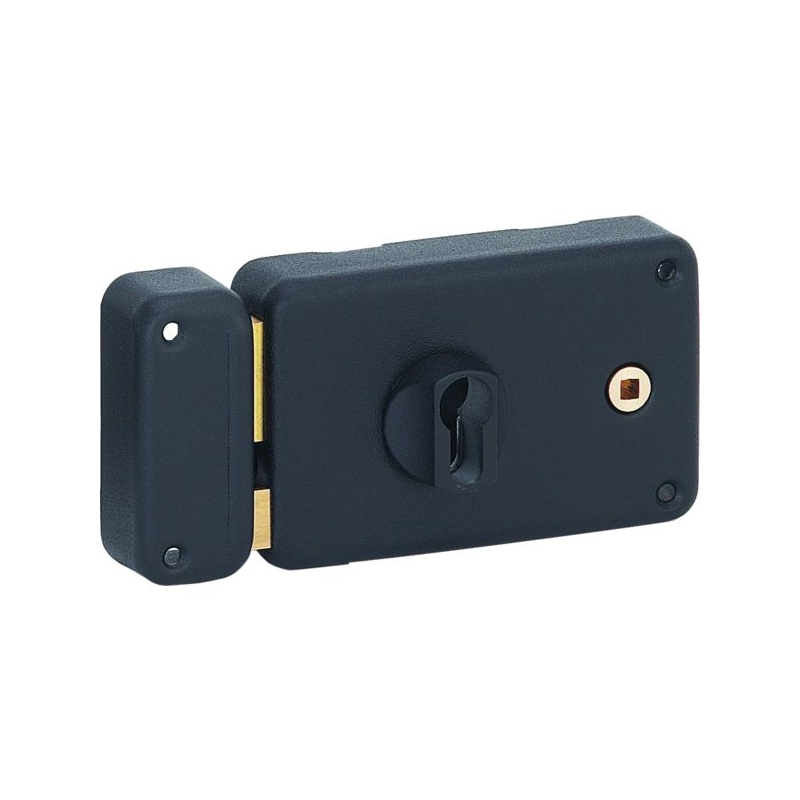 Coffre et gâche acier embouti. Pêne dormant et pêne ½ tour acier zingué. Mécanismes 2 tours. Rappel à l'équerre. Entrée de cylindre et de fouillot en laiton. Livré avec gâche, sans cylindre. Saillie pêne dormant : 5 mm Coffre : 140 x 88 mm Axe : 55 mm Entraxe : 60 mm Fouillot carré : 6 mm Finition : époxy noir Conditionnement : boite