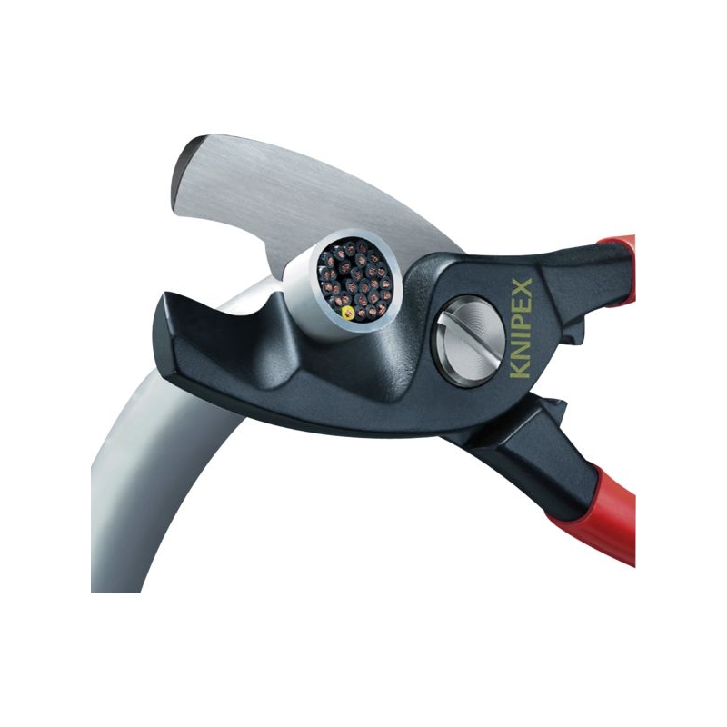 Pour câble cuivre et aluminium. Double tranchant de lame, permettant une prise en main ergonomique dans toutes les situations de coupe. Charnière vissée réglable. Capacité de coupe : Ø 20 mm Longueur : 200 mm