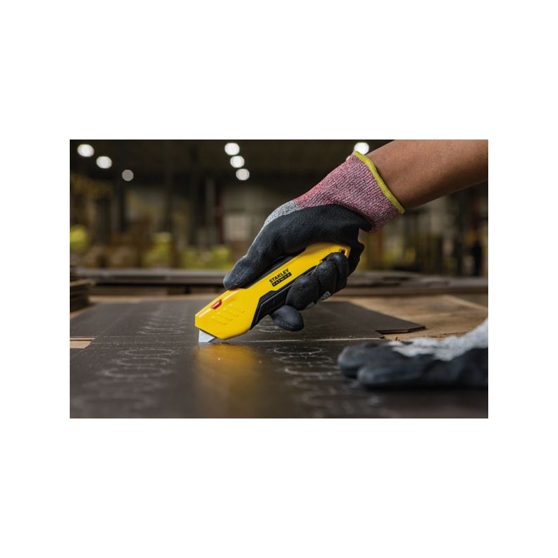 Lame auto-rétractable. Système de gâchette pour rétractation de la lame et système de blocage de la lame. Changement de la lame InstantChange. Poignée grip bi-matière. Trou d'accroche pour dragonne. Stockage des lames intégré. Livré avec 1 lame de sécurité à bout arrondi.