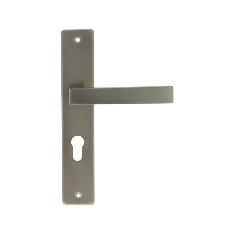 Pour porte intérieure d'épaisseur 40 à 45 mm. Plaque : 220 x 40 mm Entraxe de fixation : 195 mm Entraxe de serrure : 70 mm Longueur béquille : 122 mm Saillie de la béquille : 45 mm Fouillot carré : 7 mm Finition : inox velours Conditionnement : boite 100% recyclable.
