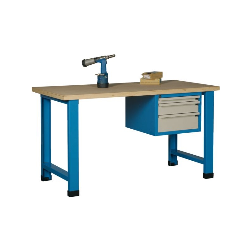 Plateau hêtre de 40 mm d'épaisseur. Pieds avec embouts plastiques. Charge admissible : 800 kg l x H : 750 x 840 mm Longueur : 1,50 ou 2 m Livré démonté.
