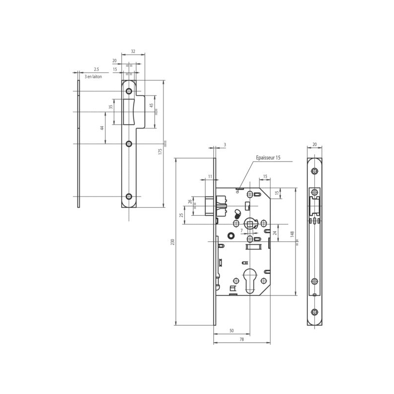 Gâche plate, bouts ronds, en acier pour serrures à larder D453 et D455. Épaisseur : 2,5 mm Largeur : 20 mm Conditionnement : boite Colisage : 25 pièces