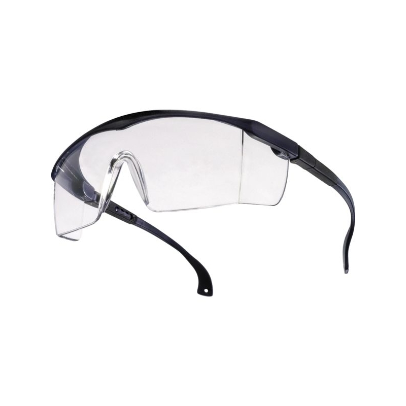 Surlunettes ou lunettes visiteur. Monture en polycarbonate. Oculaires incolores en polycarbonate traités antirayures. Branches étirables et face inclinable. Poids : 40 g Norme : CE Cat II - EN 166 - EN 170