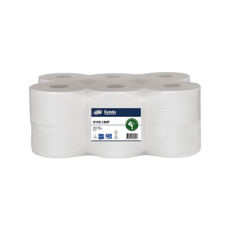 Pure ouate de cellulose, 2 plis collés. Dimension laize : 8.5 x 34 cm Grammage : 14,5 g/m²