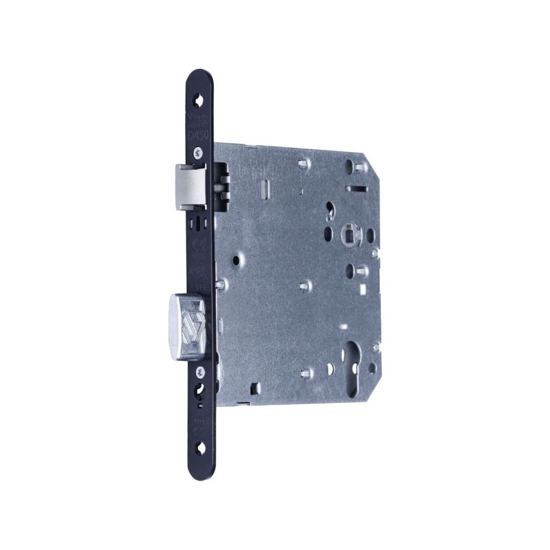Pêne dormant et ½ tour pour cylindre profilé réversible sans démontage. Pêne dormant oblong nickelé, coffre anticorrosion. Pêne ½ tour bombé en inox. Système de rattrapage de jeu au niveau de la poignée, fouillot équipé d'une lame ressort qui évite le jeu et maintient la poignée bien à l'horizontale. Gâche à commander séparément code 57749. Entraxe : 70 mm Fouillot carré : 7 mm Dimensions de têtière bouts ronds : 230 x 20 x 3 mm Finition : époxy noir Conditionnement : boite 100% recyclable