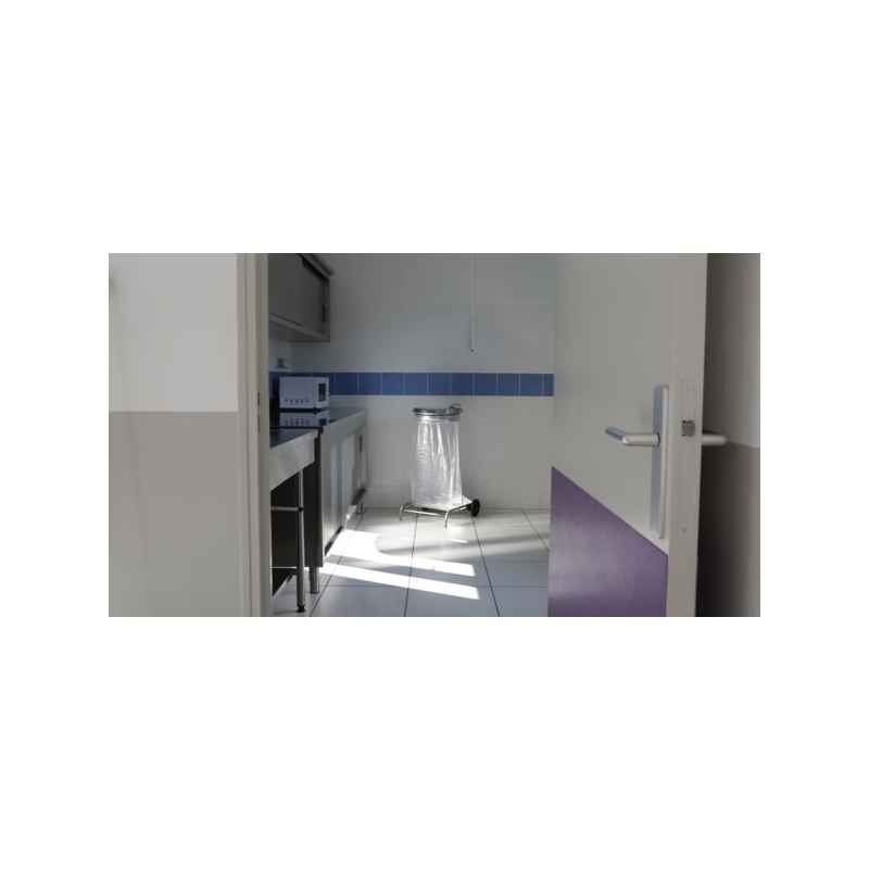 En acier poudré anti-UV gris métal permettant une utilisation intérieure. Large pédale métal pour ouverture du couvercle. Maniable grâce à sa poignée de transport et ses roues lisses Ø 150 mm. Maintien du sac par ceinture élastique. Particulièrement adapté au milieu médical/cuisine. Adapté à la méthode HACCP. S'utilise avec des sacs de 50 et 110 l.