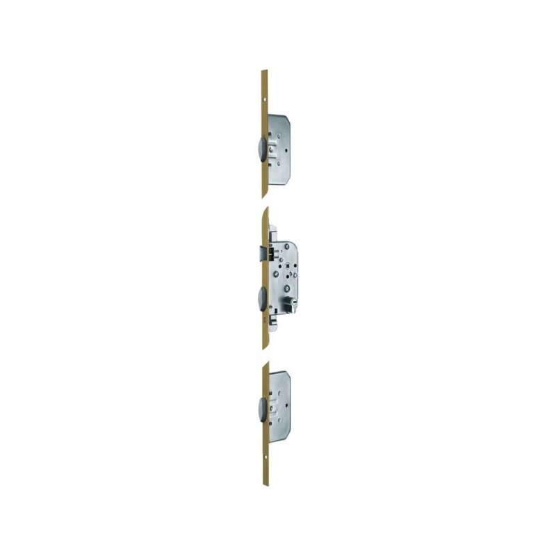 Coupe-feu pare-flamme 1/2 heure sur le bois, 1 heure sur l'acier. 3 pênes latéraux oblongs. Pêne ½ tour réversible sans démontage. Gâches à commander séparément. Coffre : 148 x 78 mm Têtière à bouts carrés : 2040 x 18 mm Axe : 50 mm Entraxe : 70 mm Fouillot carré : 7 mm Conditionnement : boite Colisage : 10 pièces 100% recyclable