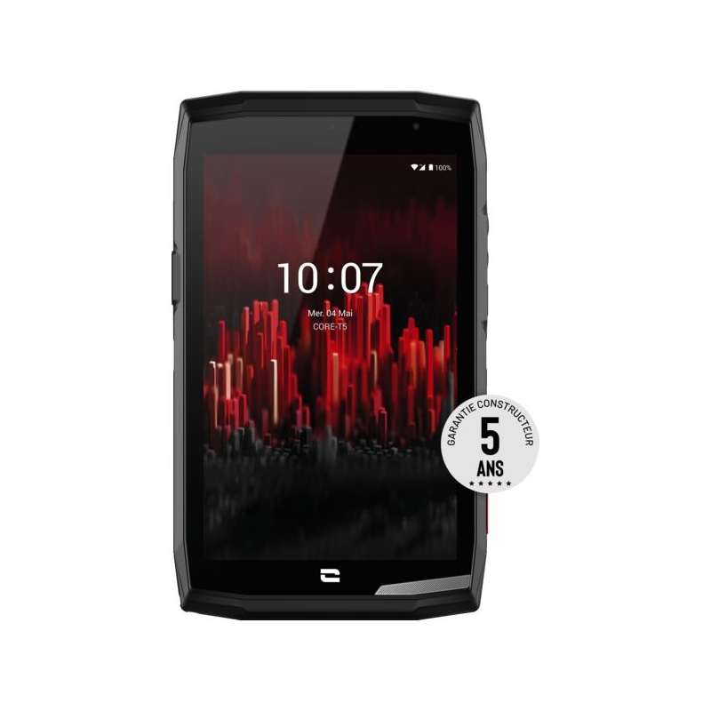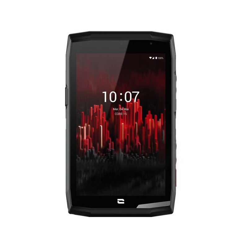 Étanche, résistant et endurant. Double NanoSIM + Micro SD. (extension 512 Go). Haut parleur 100 décibels. Système : Androïd AER. Mémoire de stockage : 3 Go RAM Mémoire : 32 Go. Écran : 8 pouces. Réseau : 4G+, WIFI, Bluetooth, NFC. Photos : 13 et 5 mégapixels. Batterie : 7000 mAh. Conçu pour la PMR. Indice de protection : IP 68 DAS : corps 1.58 W/kg, membres 2.90W/kg. Indice de réparabilité 9.1/10 + pièces détachées disponibles 10 ans Le prix de vente HT comprend 10 € de SORECOP.